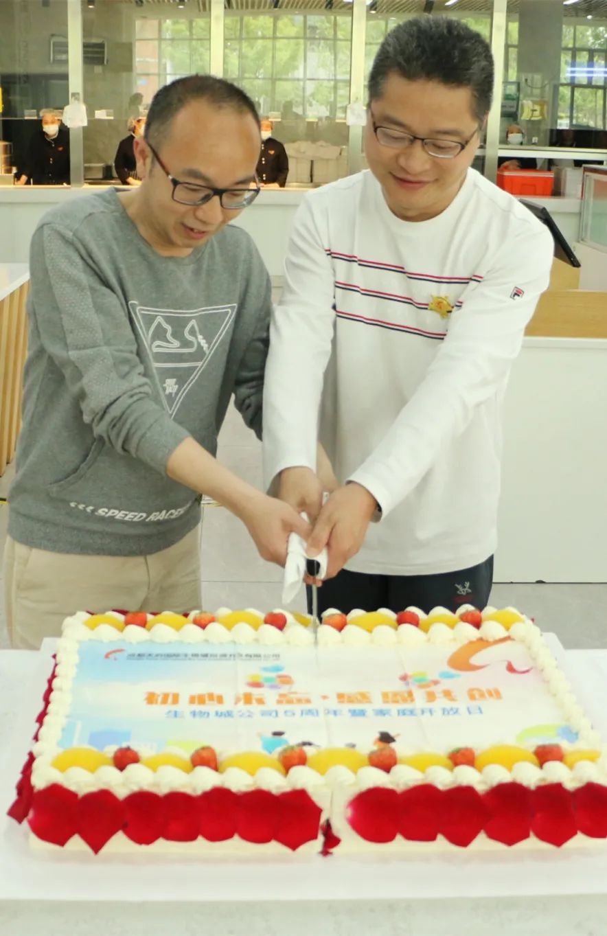 家庭共創(chuàng)游戲結(jié)束后,公司領(lǐng)導(dǎo)及全員一起切蛋糕、吹蠟燭,舉杯同慶生物城公司5周年生日快樂。